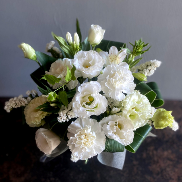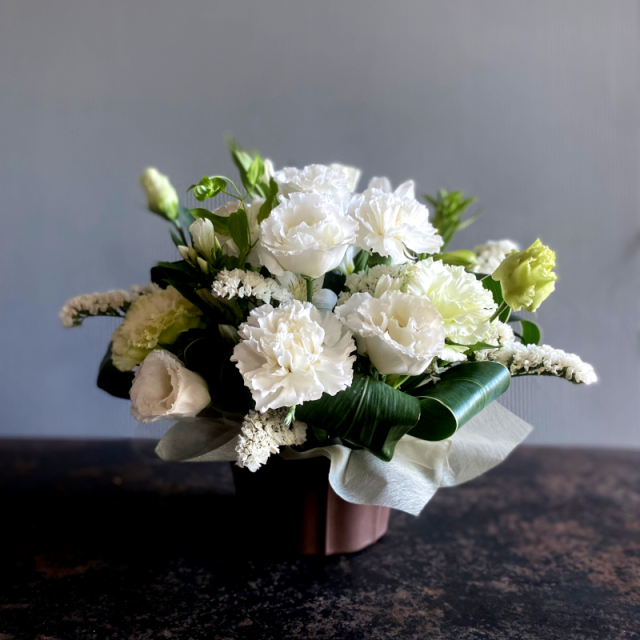 TOP商品一覧 フラワーアレンジ(white) 価格: ¥3,300 (税込) 販売期間: 数量: 個 在庫: ○ 在庫 ○ 返品についての詳細はこちら 凛と清々しいホワイトアレンジ。 商品詳細 ▶商品コード AR03-003 ▶花材 ------ ▶資材 ------ ▶サイズ 幅30cm×高さ25~35cm×奥行30cm ▶商品同梱物 ------ 商品説明 ------