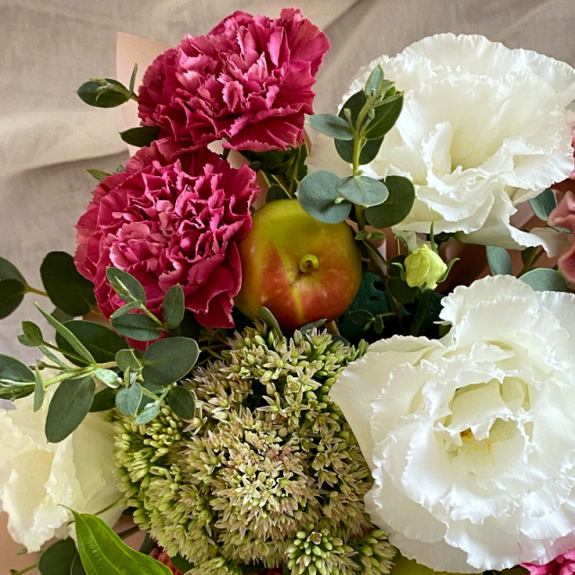 ホワイト系のお花の中にピンク系のお花がポンポンと