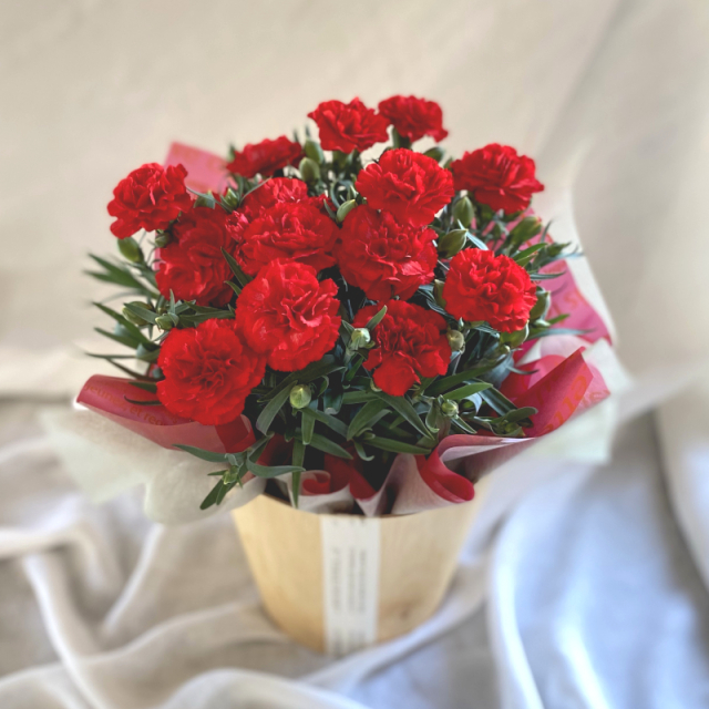赤色カーネーションの花鉢。