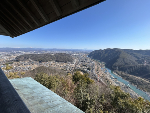 名古屋方面にはビル群、北は乗鞍岳まで天気がいいと見えますよ。
