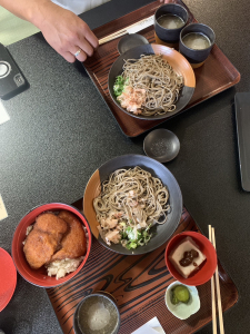 よく歩いたので、お腹もすいてきたので「越前そば」と「ソースカツ丼」と「ごま豆腐」を
