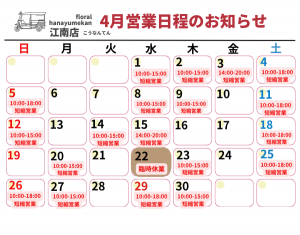 4月店舗営業日程のお知らせ