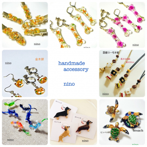 お花のアクセサリーと、面白い生き物達のピンバッチ