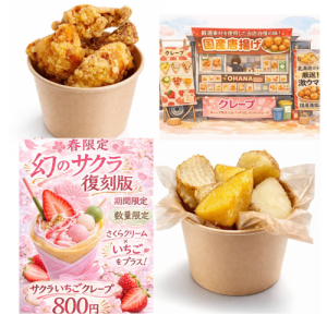 ☆クレープ、国産唐揚げ、北海道ポテトの販売