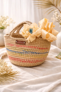 昔懐かしい、大人かわいいをテーマにかぎ針で麻紐やスズランテープ、毛糸などでバックや小物を制作しています