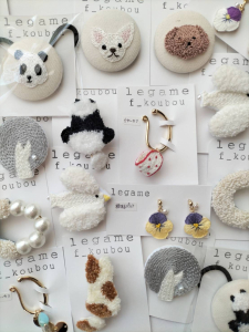 動物モチーフやお花モチーフの、手刺繍アクセサリーを作っているlegameです