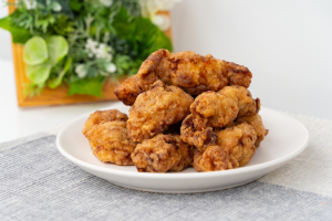 唐揚げは国産鶏肉を使用し、卵、小麦粉を使用しない、グルテンフリー!